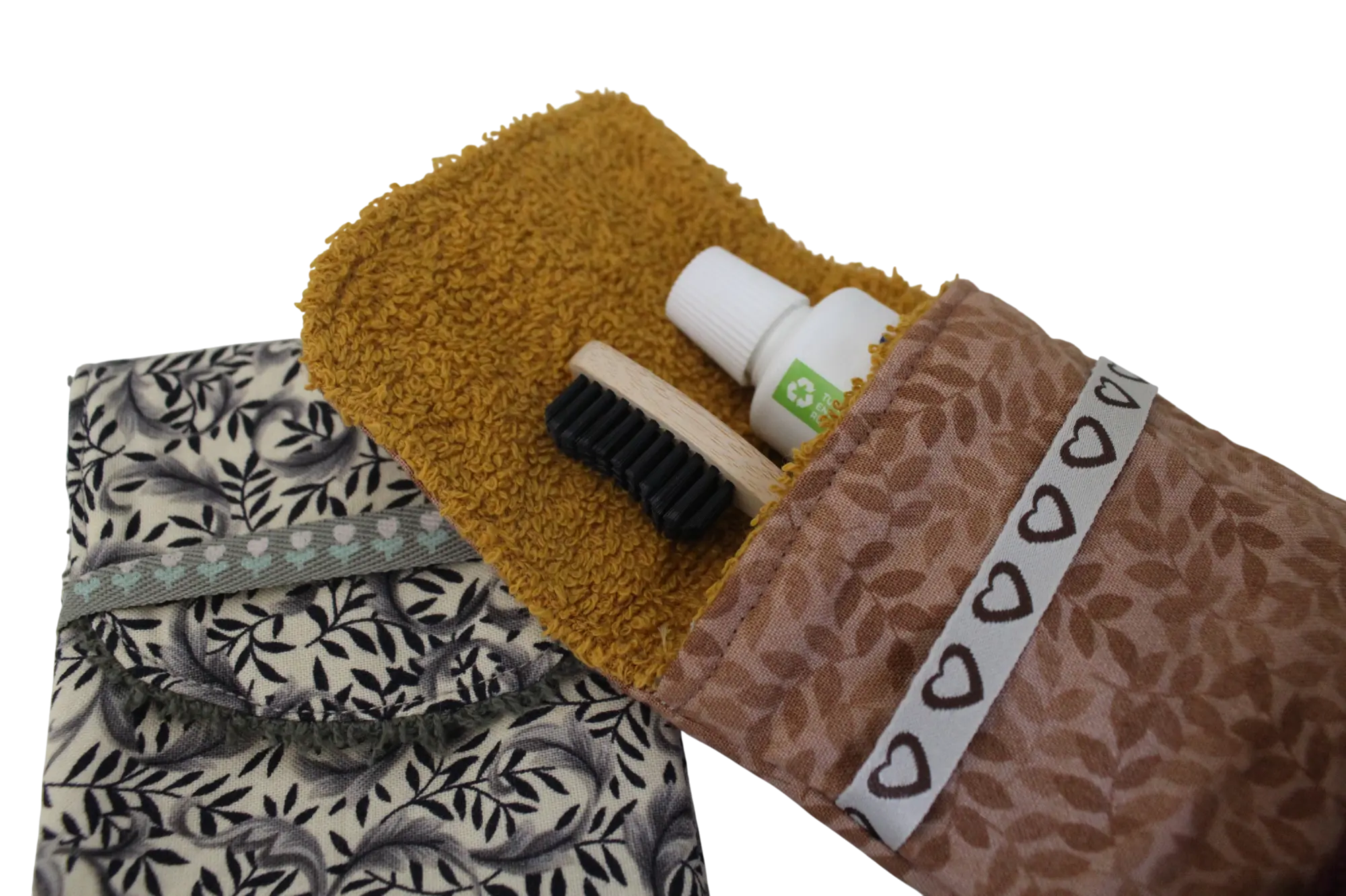 Tout est personnalisable avec le choix des tissus, des rubans, du biais, de l’écriture.