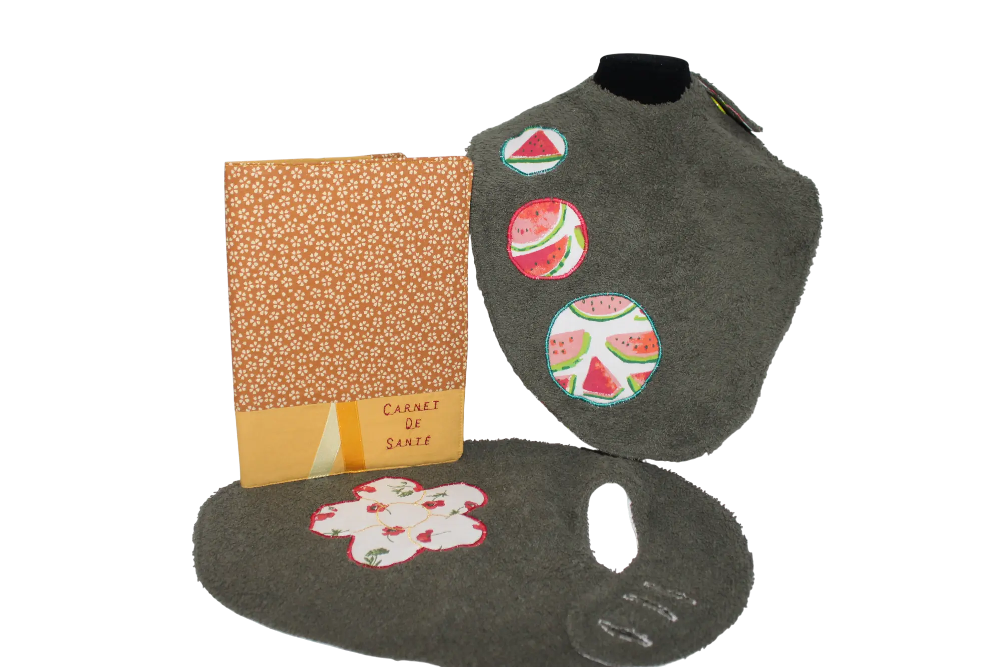 Tout est personnalisable avec le choix des tissus, des rubans, du biais, de l’écriture, du point fantaisie.