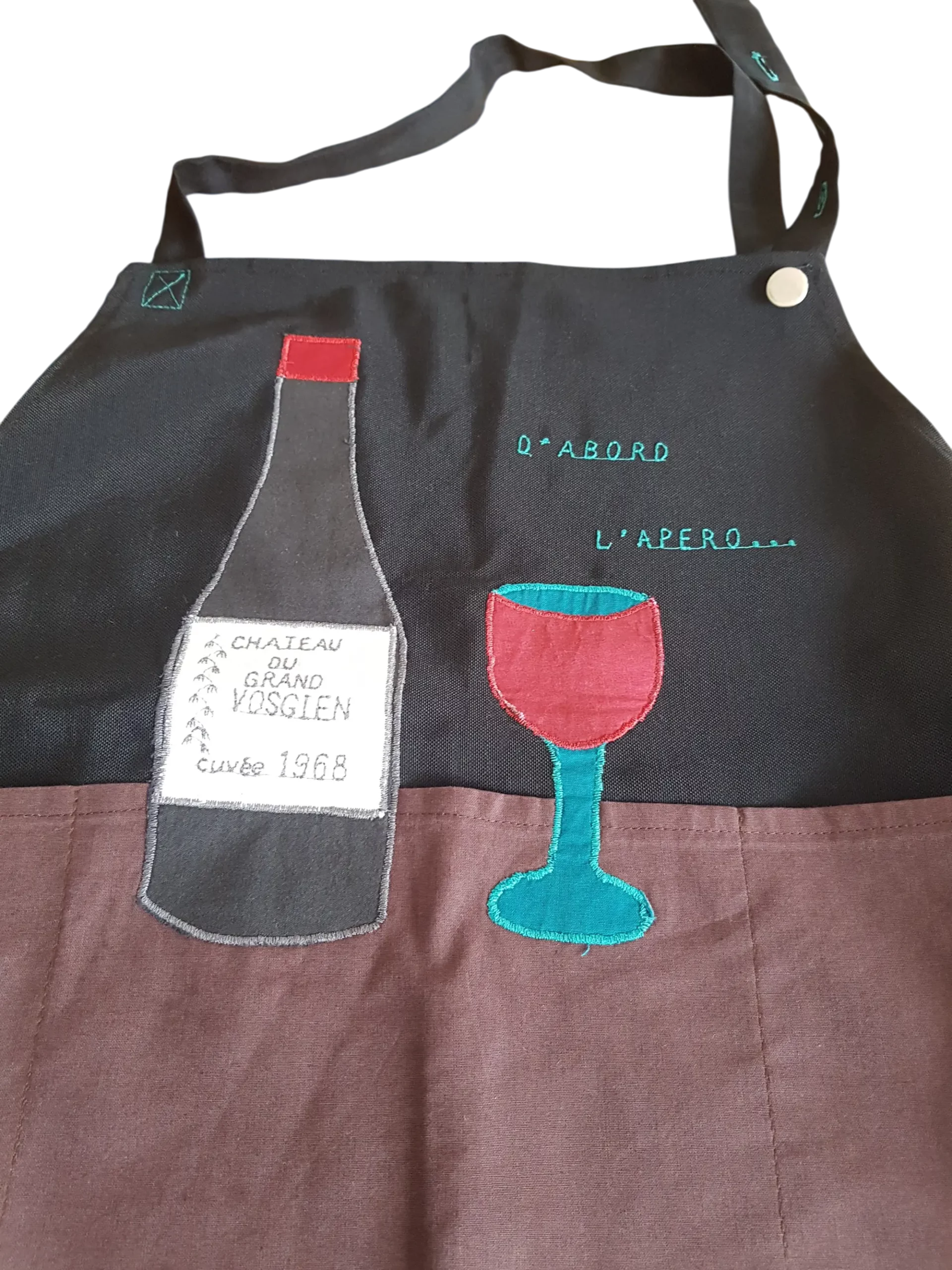 Avec ou sans boutonnières pour le lien autour du cou et grands liens à la taille.